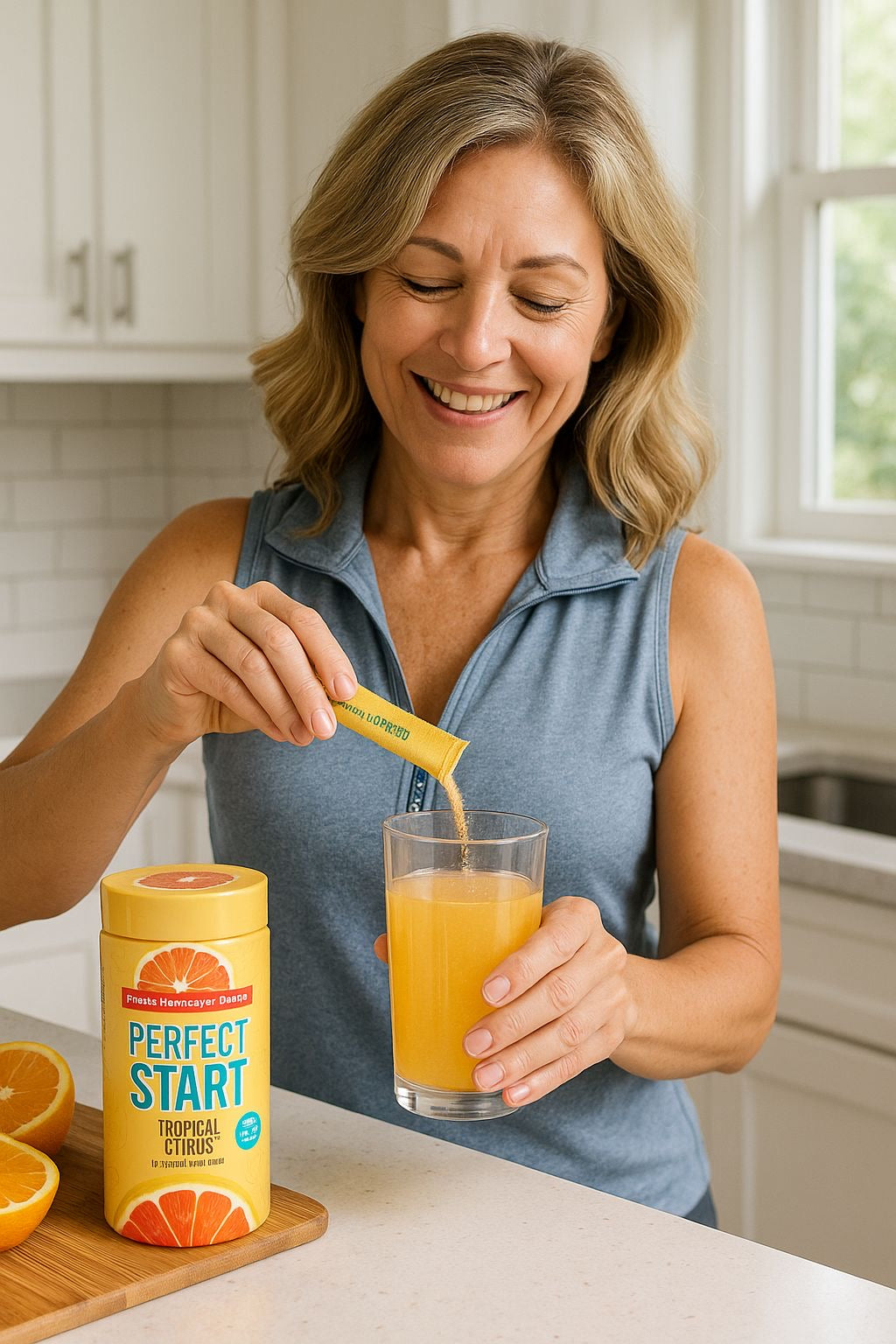 Hydrate smarter with Perfect Start Fasting Electrolytes, a sugar-free electrolyte powder made with premium ingredients, real fruit, and essential minerals for all-day hydration. Each canister includes 20 perfectly portioned sticks. Just rip, pour, shake, and go. Supports hydration, focus, and energy without sugar or artificial ingredients.