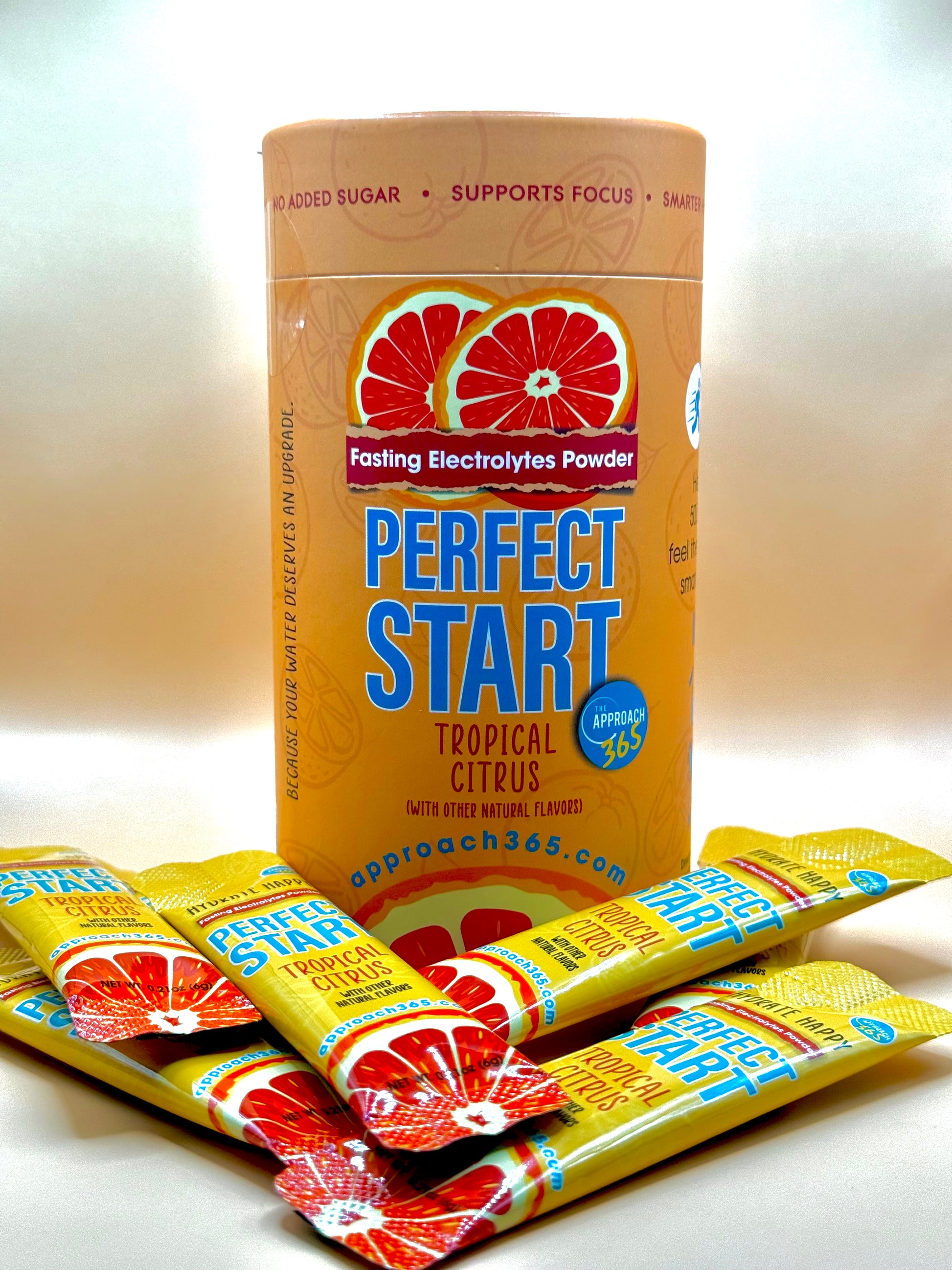 Hydrate smarter with Perfect Start Fasting Electrolytes, a sugar-free electrolyte powder made with premium ingredients, real fruit, and essential minerals for all-day hydration. Each canister includes 20 perfectly portioned sticks. Just rip, pour, shake, and go. Supports hydration, focus, and energy without sugar or artificial ingredients.